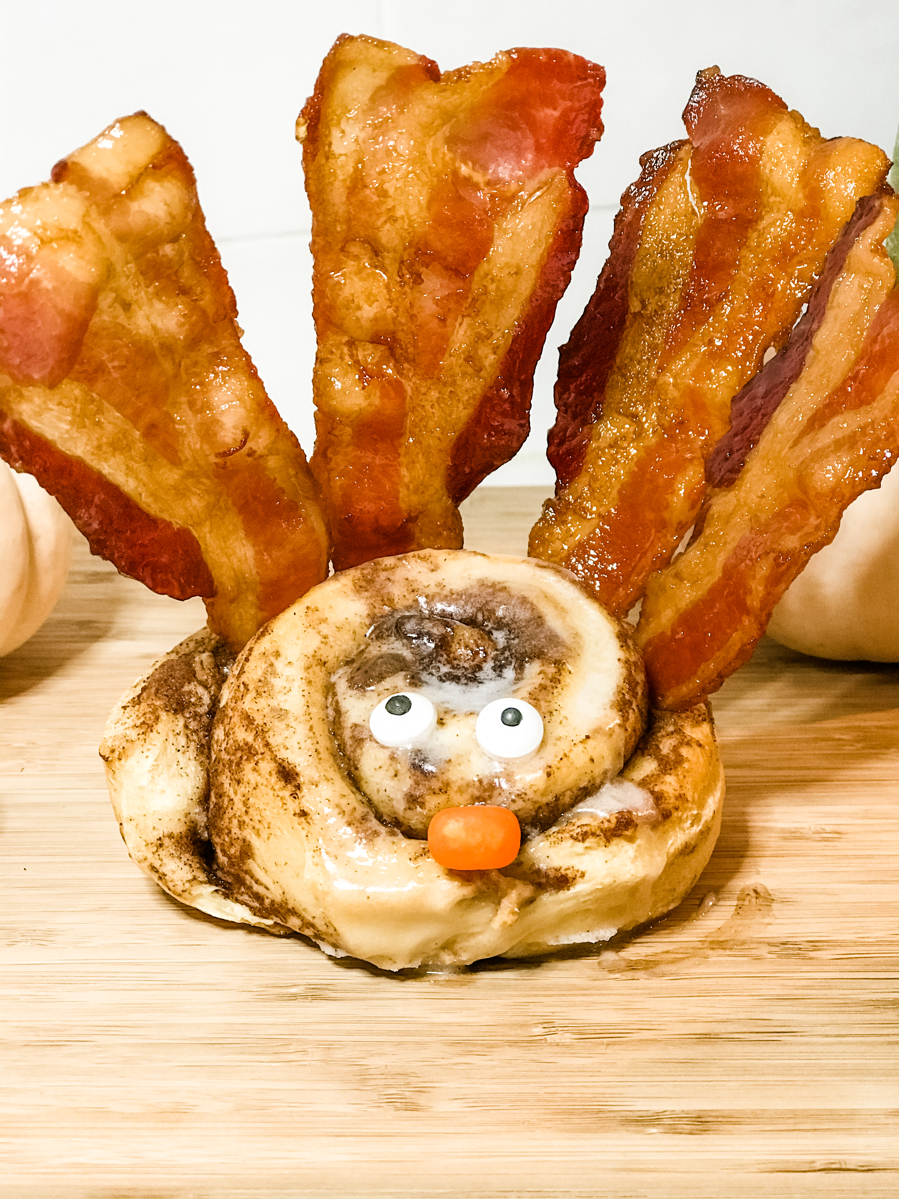 Okay, but can we talk about the most adorable (and delicious) turkey treats we made? Picture this: warm cinnamon rolls fresh from the oven, with strips of crispy bacon fanned out as turkey feathers, candy corn for the beak and wattle, and candy eyes to complete the look. The kids went absolutely wild for these! They loved helping arrange the bacon “feathers” before we baked them, and let’s be honest—anything that combines cinnamon rolls and bacon is a win in my book. They’re perfect for a Thanksgiving morning breakfast or a fun weekend activity that ends in a tasty treat. Fair warning: you might eat more bacon “feathers” during prep than actually make it onto the turkeys. No judgment here!